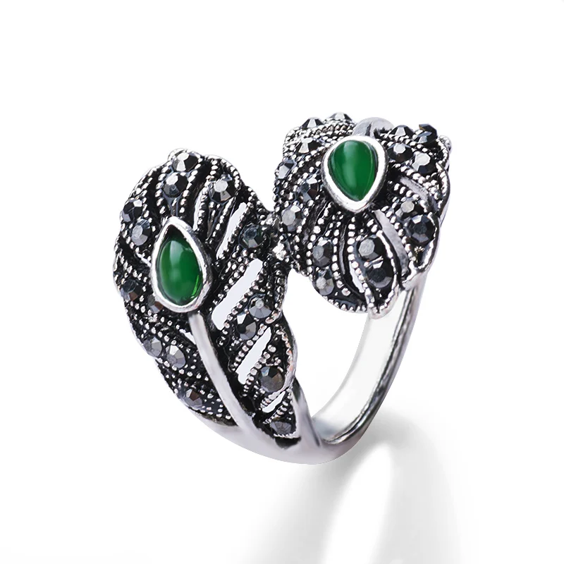 On-time Delivery: If you do not receive your purchase within 60 days, you can ask for a full refund before order completion (when you click "Confirm Order Received" or exceed confirmation timeframe).Excellent Promo SHUANGR Brand Vintage Ladies Jewelry Antique Retro Color Leaf Rings with Green Cubic Zirconia Charm For Women Jewelry