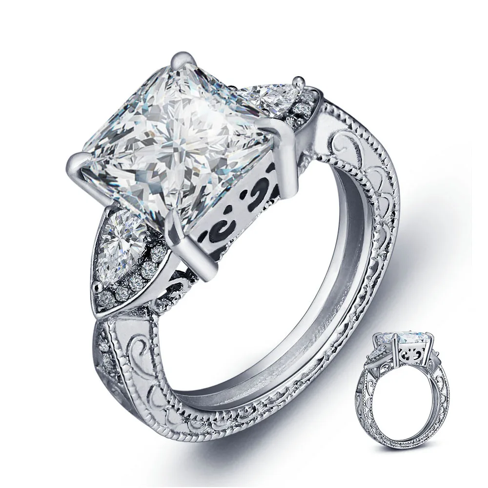 Fantastic Clearance Solid 925 Sterling Silver Wedding Anniversary Engagement Ring Princess Cut 10mm White Rings Women Jewelry fashion sale Rating: 4.9 out of 5