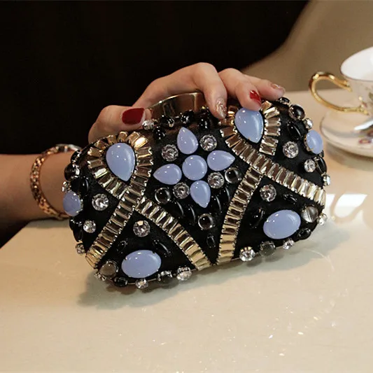 Big New NEW black women evening bags luxury shoulder bags blue rhinestone bride diamonds clutch bag wedding purse party bags fashion sale Rating: 2.5 out of 5