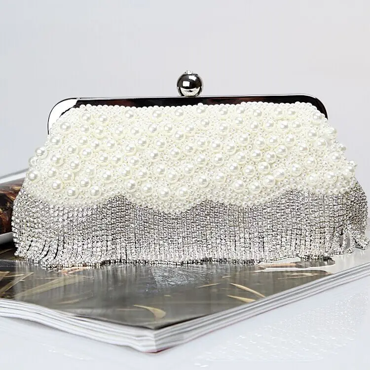On-time Delivery: If you do not receive your purchase within 60 days, you can ask for a full refund before order completion (when you click "Confirm Order Received" or exceed confirmation timeframe).Fast Limited Fashion Silver Tassel Beadead Party/wedding Bags Woman Diamonds purse Luxury day clutches Chain shoulder Bags women Cluthes