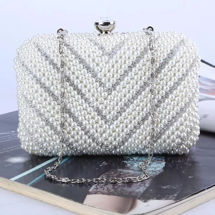 Hot Promotion Fashion Ivory Pearl Evening bag womens Beaded rhinestone Day clutch Handmade Luxury wedding/party bags Beading Purse handbag fashion sale Rating: 3.4 out of 5