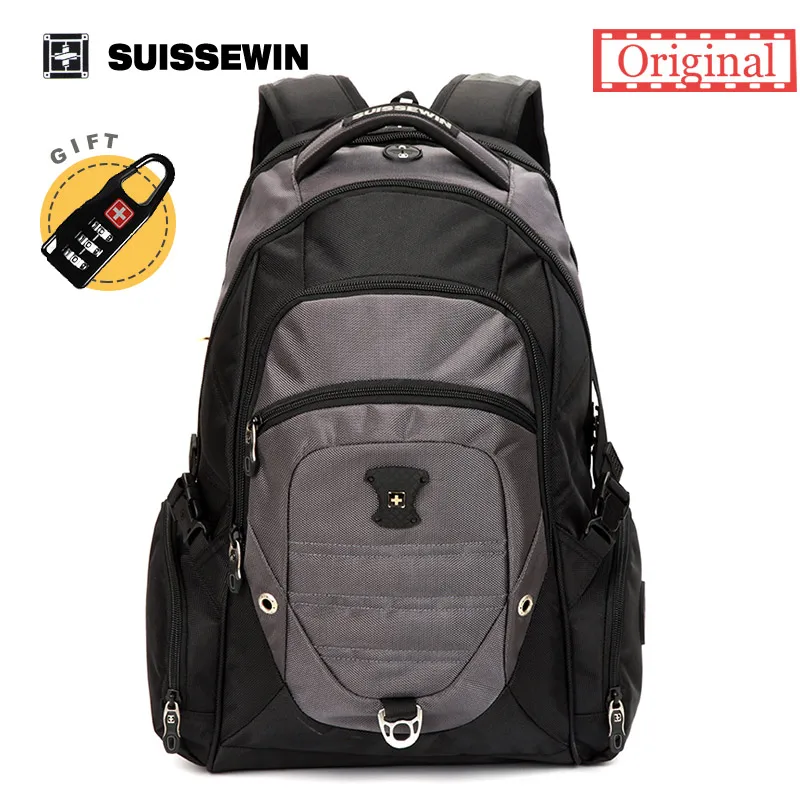 Hurry! New Suissewin Brand Backpack Men Swiss Anti-theft 15.6 Laptop Backpack Bag 36L Mens Backpack Big Sac a dos Satchel Bag Black Gray fashion sale Rating: 5 out of 5