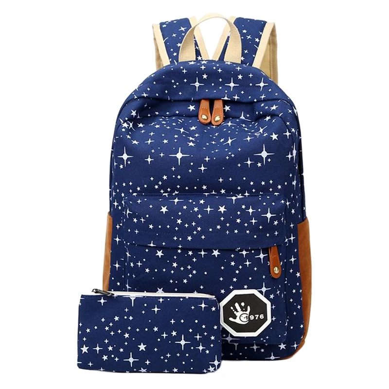 2 pcs/set Fashion Star Women Men Canvas Backpack