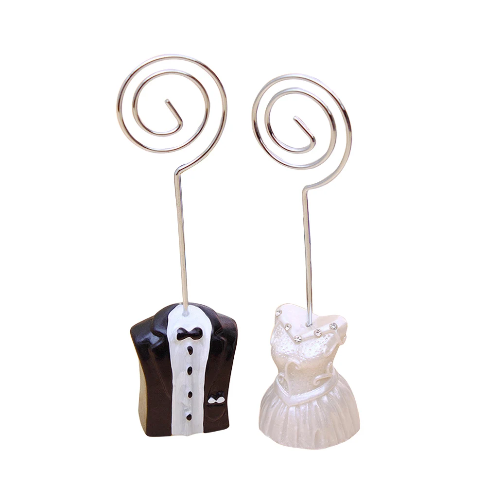 1 Pair Affordable Bride and Groom dress Shaped Design Table Number Seat Card Clip for DIY Wedding Party Table Decortaion