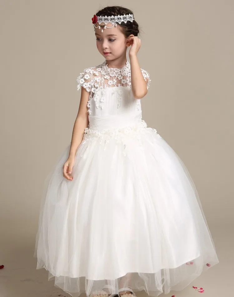 On-time Delivery: If you do not receive your purchase within 60 days, you can ask for a full refund before order completion (when you click "Confirm Order Received" or exceed confirmation timeframe).2018 New Girl Lace Long Dress With Sweet Flower For Age 3-12 Baby Kids Princess Wedding Prom Party White Big Bow Short Sleeve Dress