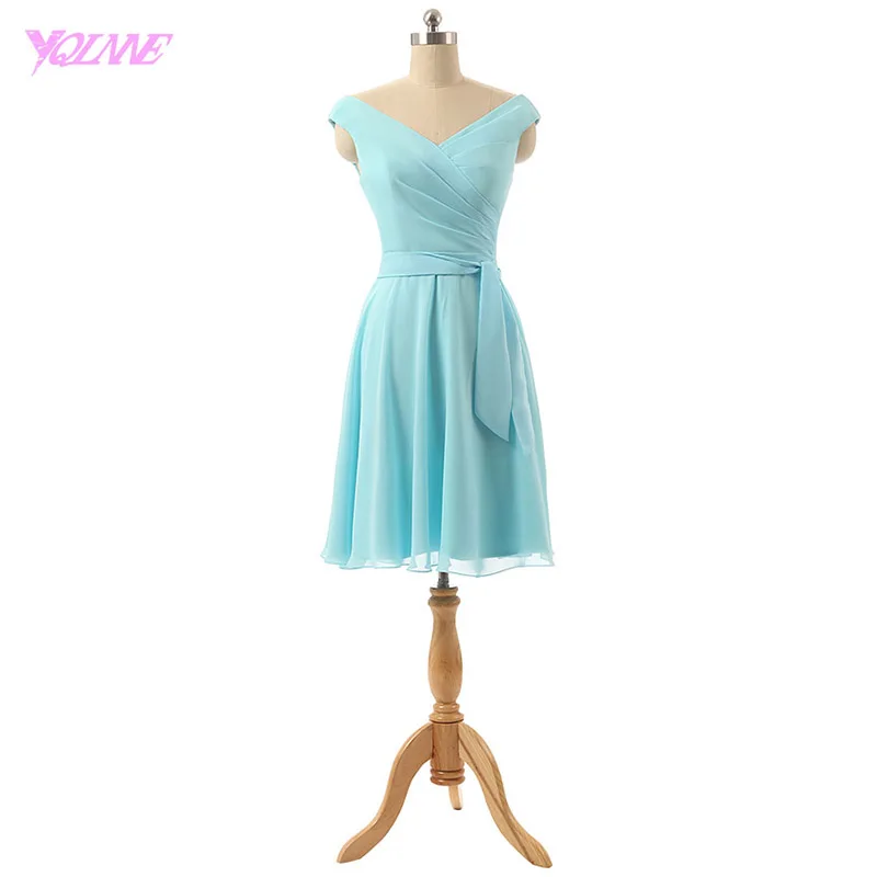 On-time Delivery: If you do not receive your purchase within 60 days, you can ask for a full refund before order completion (when you click "Confirm Order Received" or exceed confirmation timeframe).2018 Sale YQLNNE Blue Chiffon Bridesmaid Dresses Knee Length Wedding Party Dress