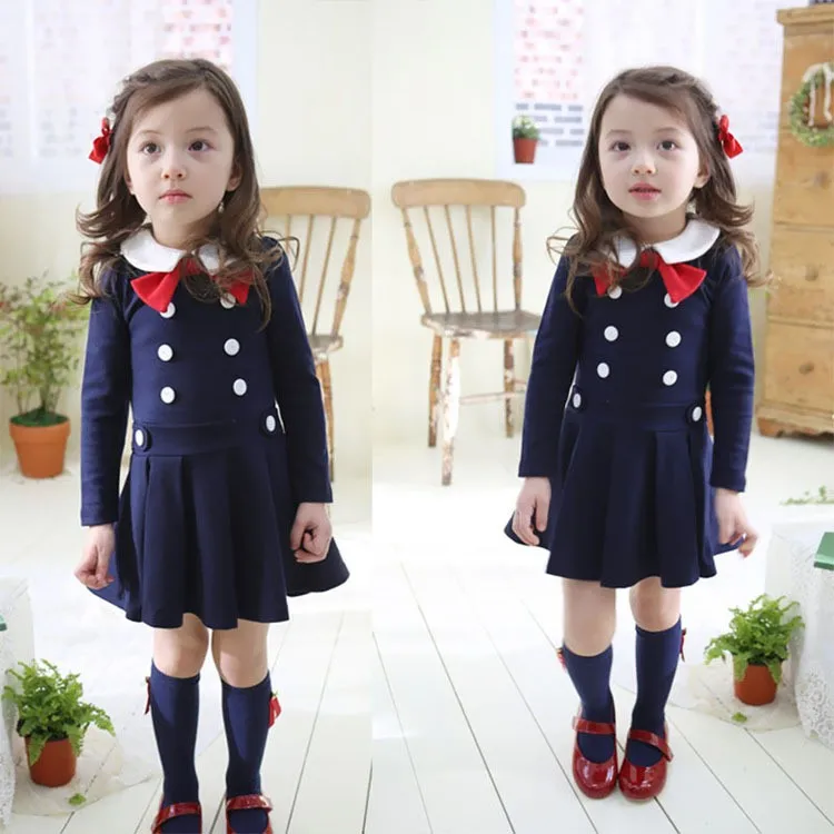 On-time Delivery: If you do not receive your purchase within 60 days, you can ask for a full refund before order completion (when you click "Confirm Order Received" or exceed confirmation timeframe).Cool Promotion Autumn Double-Breasted Girl Dress Pink Navy Cotton Princess Dress for Party Wedding Kids Clothes Children Clothing for 2-7Years