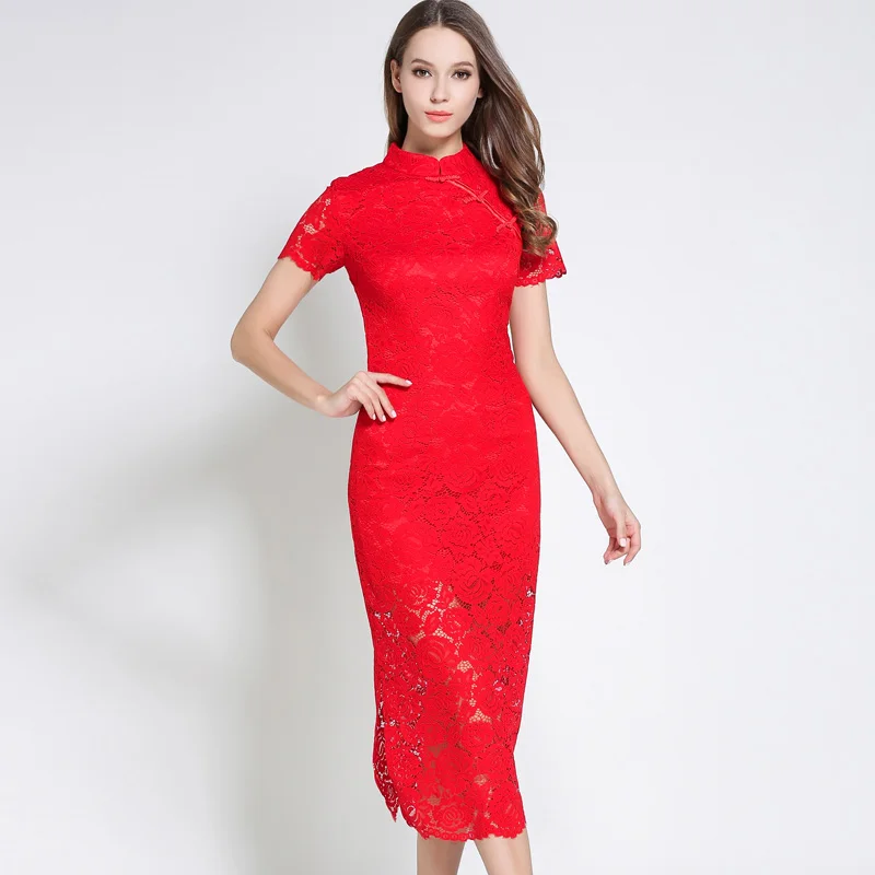 Super Special Promotion Women Runway Lace Chinese Style Dress New 2017 Summer High Quality Stand Collar Dresses for Woman Bridal Wedding Party fashion sale Rating: 3.9 out of 5