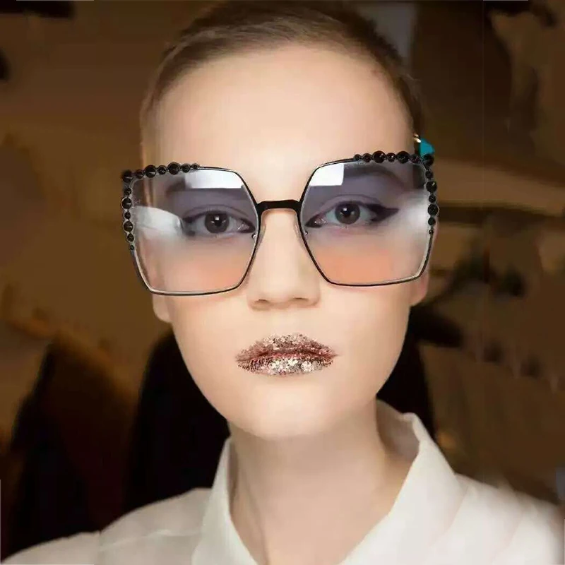 2017 Brand Designer Cat Eye Sunglasses For Women Oversized Clear Sun Glasses Ladies Luxury Jewelry Eyewear Oversized Shades
