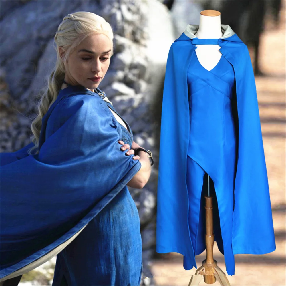 On-time Delivery: If you do not receive your purchase within 60 days, you can ask for a full refund before order completion (when you click "Confirm Order Received" or exceed confirmation timeframe).Fast Discount 2018 New Right Game Ice and Fire Song Cosplay Costume Daniele Tangley Anlong Blue Halloween Cap Cloak Cosplay Anime Clothing
