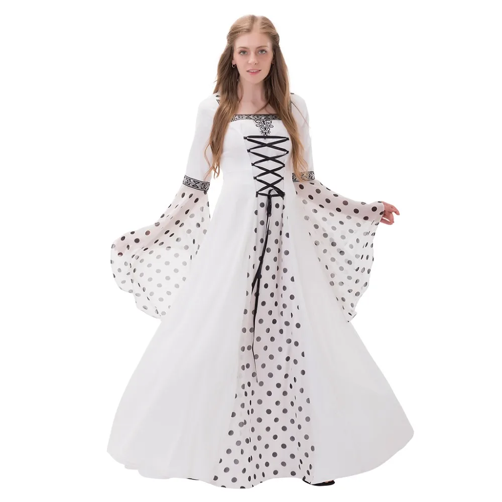 Masquerade Ball Dress Medieval Wedding Ball Gown Romantic Gothic Vampire Dress Riding Hood Fairy Tale Cosplay Dress J99Size :XS,S,M ,L,XL,2XL,3XL ( processing time :5-7business days) Custom Made size (one size :leave a note with size information place the order :gender ,chest ,shoulder width ,waist ,hips ,full height ,outside leg length ,processing time:7-10 business days) Delivery time: 5-8business days with Fedex,DHL Dress details : 1.White with Black shows it Mysterious ,great suitable for Medieval Wedding,Medieval Reenactments,Cosplay Parties,Renaissance Fairs ,Halloween Carnivals Parties.2.Ployester fabric : affinitive with the skinand,good drap shows the dress more dignified and magnanimous ,makes you more sweet and refreshing.no harassment.