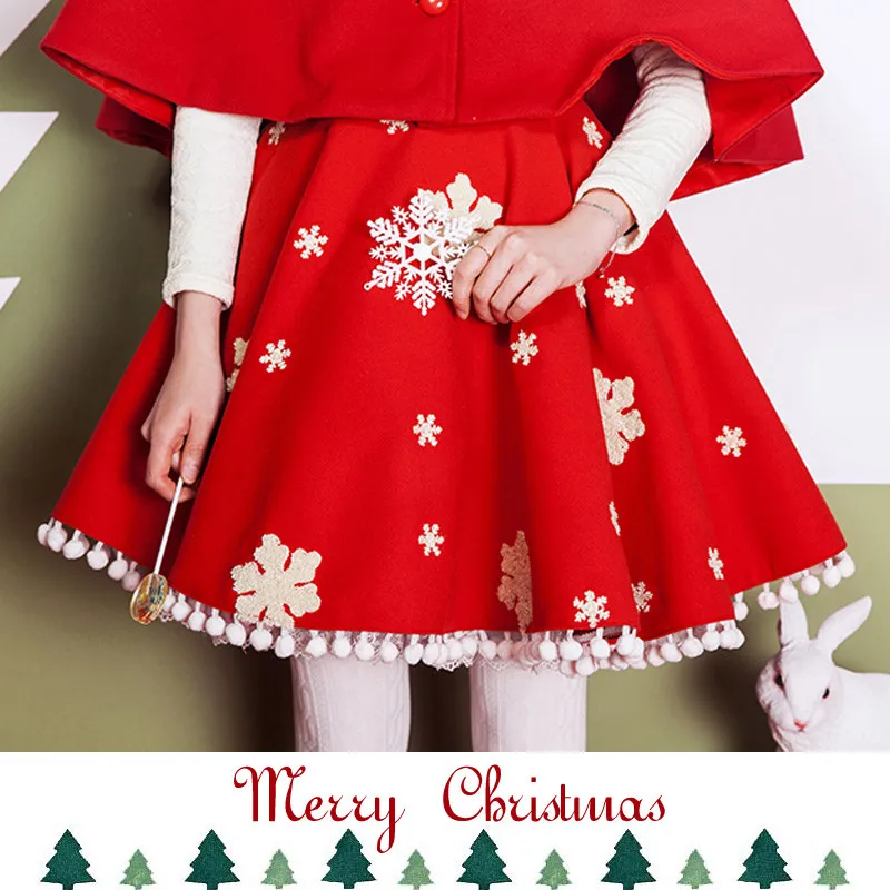 Fantastic Promotion Retro Christmas wool Embroidered Half Skirt Winter Tweed Christmas Autumn Winter Cosplay Costume O fashion sale Rating: 5 out of 5