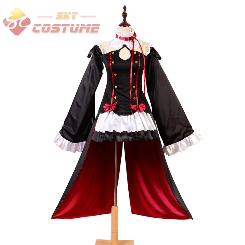Seraph of the End Vampires Krul Tepes Black Uniform Halloween Party Anime Cosplay CostumeIncluding: Top+Skirt+Bowknot+HeadwearFabric: Uniform Cloth+ Satin