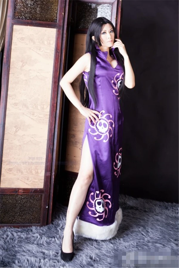 Hurry! Discount ONEPIECE!Boa Hancock the Pirate Queen Cosplay Costume Purple Dress Long Cheongsam Sexy W fashion sale Rating: 4.4 out of 5