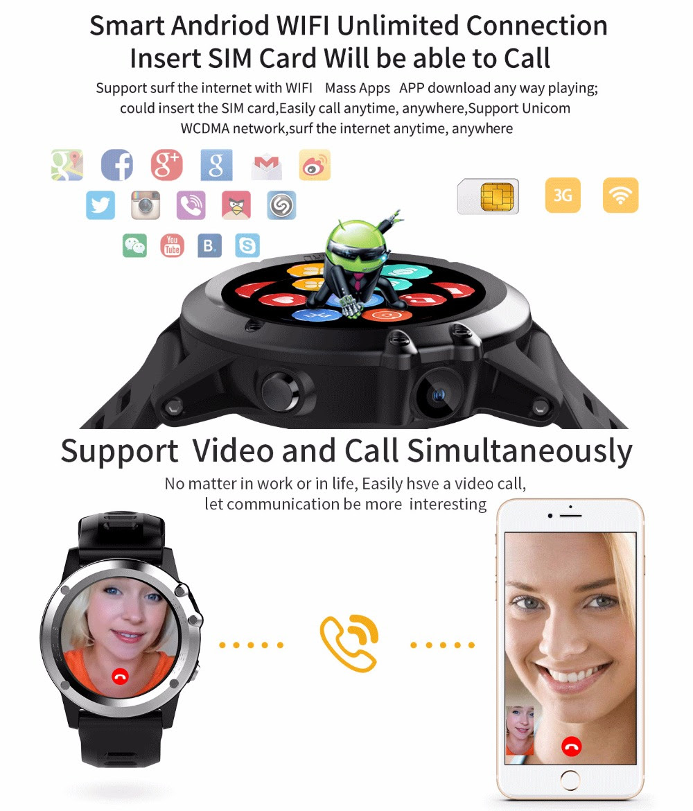 On-time Delivery: If you do not receive your purchase within 60 days, you can ask for a full refund before order completion (when you click "Confirm Order Received" or exceed confirmation timeframe).Excellent Flash Deal H1 Smart Watch Android 5.1 OS Smartwatch MTK6572 512MB 4GB ROM GPS SIM 3G Heart Rate Monitor Camera Waterproof Sports Wristw