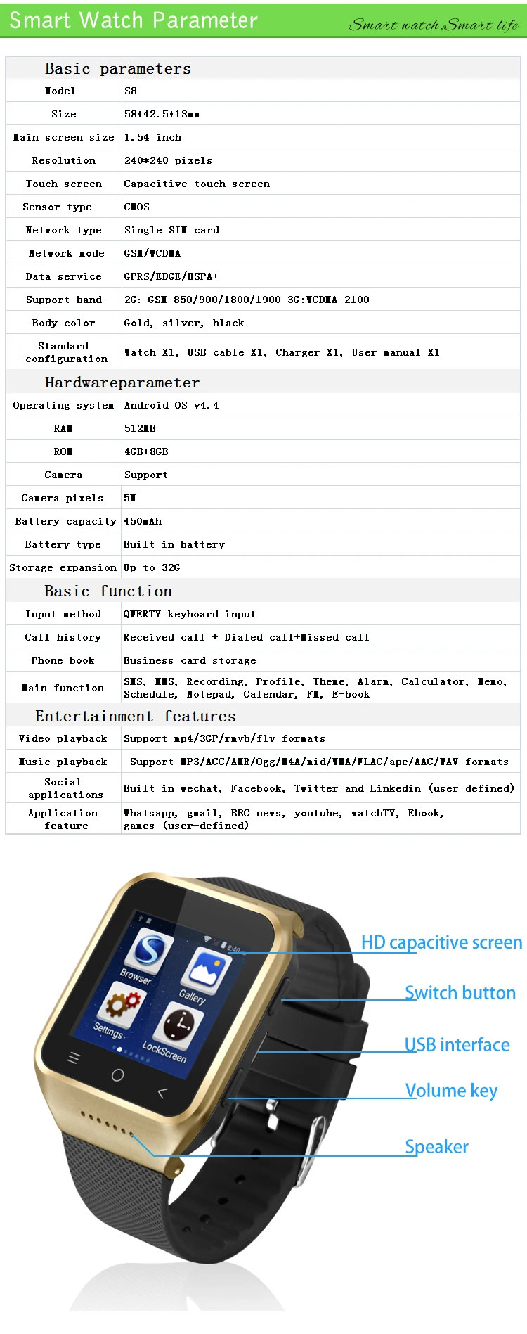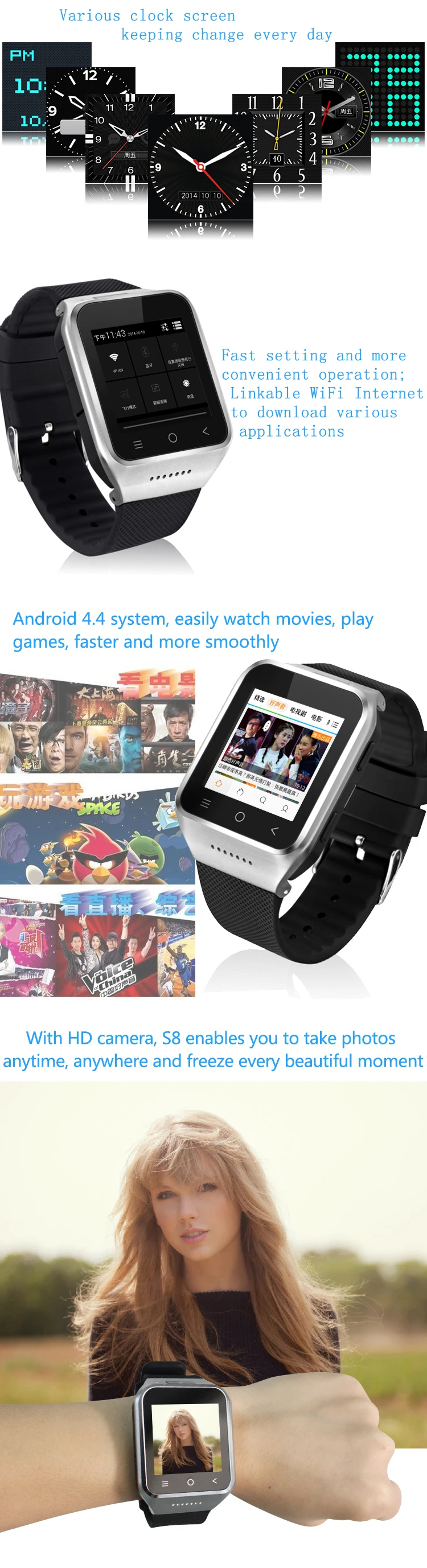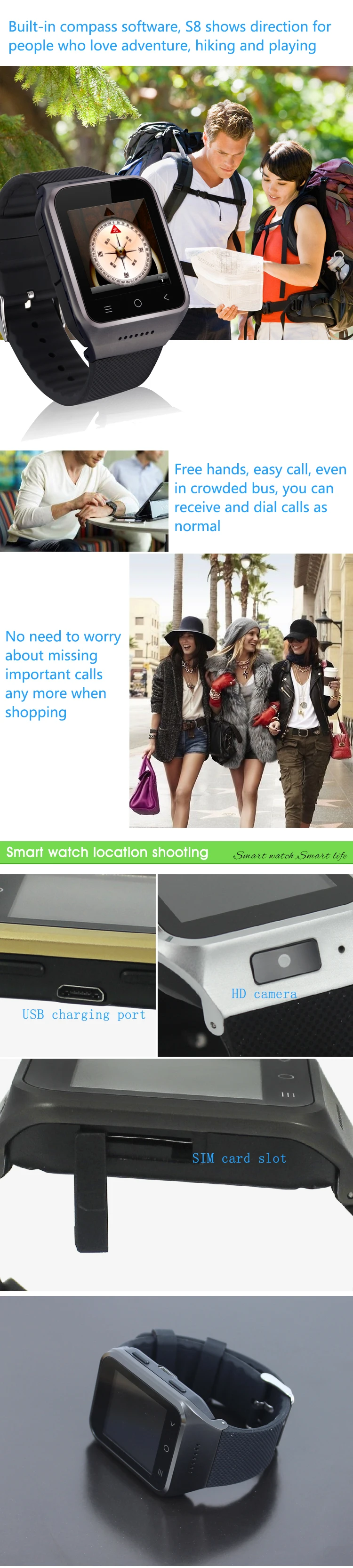 On-time Delivery: If you do not receive your purchase within 60 days, you can ask for a full refund before order completion (when you click "Confirm Order Received" or exceed confirmation timeframe).Fast Flash Deal Wrist 3G watch Android Smart watch S8 support TD Screen 5M HD Camera TF 32G speaker SIM MAP GPS receive call music smartwatch S8