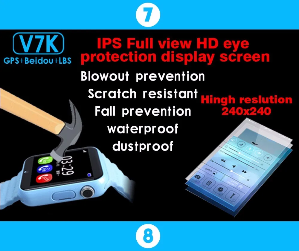On-time Delivery: If you do not receive your purchase within 60 days, you can ask for a full refund before order completion (when you click "Confirm Order Received" or exceed confirmation timeframe).Terrific Sale Smart Baby phone Watch V7K Waterproof Kids GPS Smartwatch Touch Screen Camera SOS Location Tracker Kid Safe Anti-Lost q100 q90