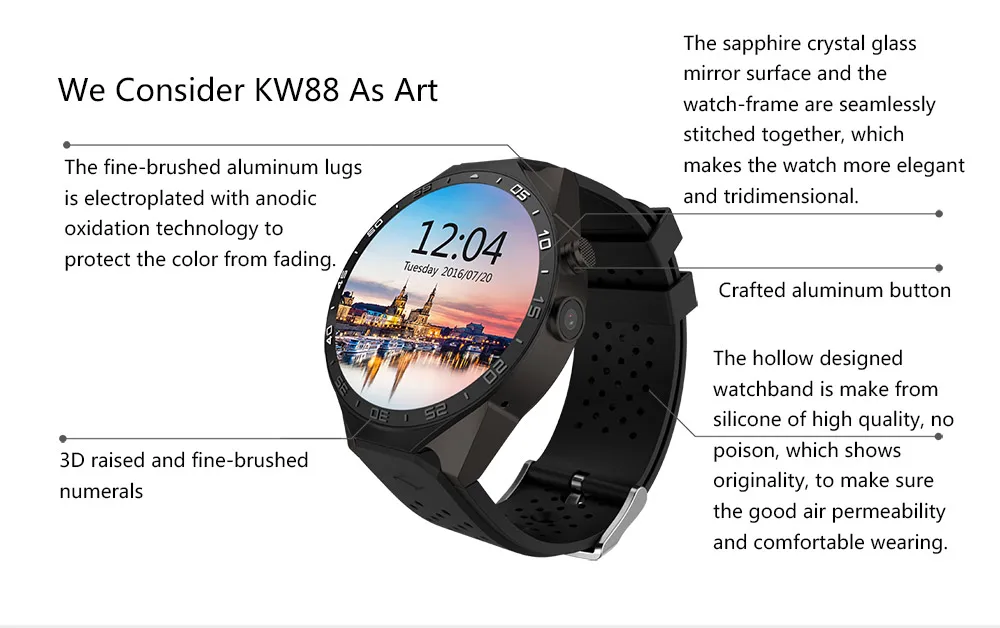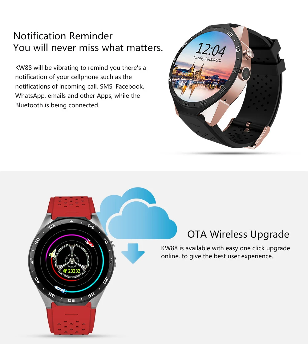 1×KW88 Smart Watch1×USB Charging Cable1×Screwdriver1×English User Manual1×Retail Box