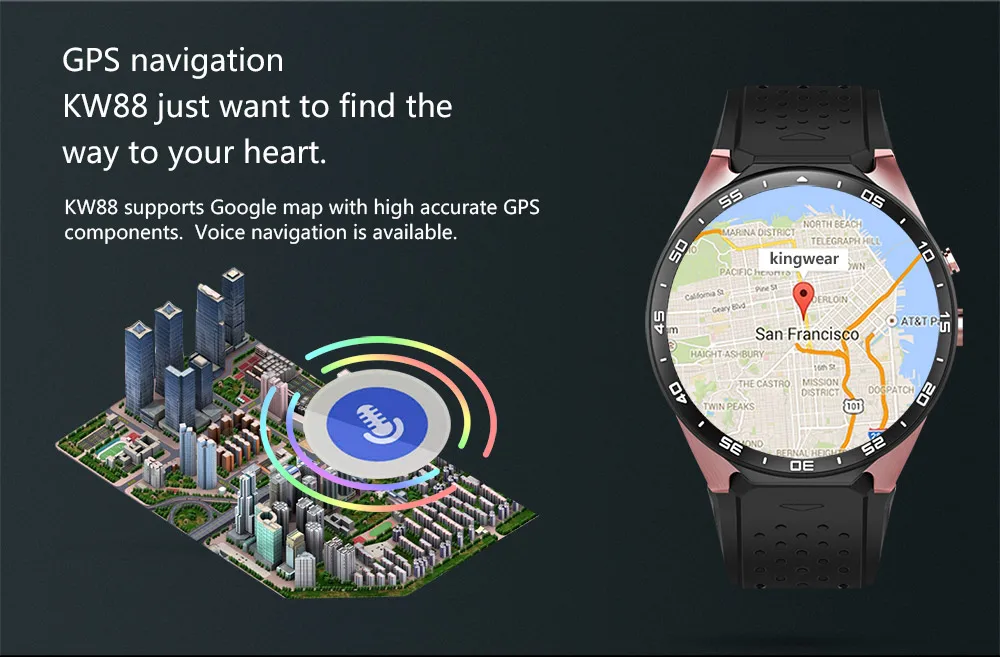 GREZOO KW88 Smart Watch Android 5.1 IOS 1.39" IPS OLED Screen 512MB+4GB ROM Smartwatch Support SIM Card GPS WiFi Call Reminder