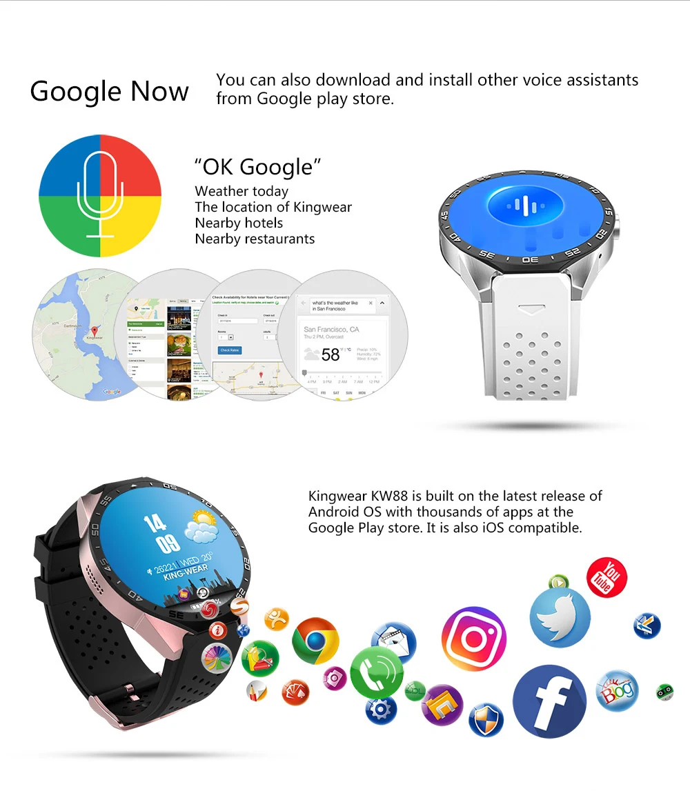 On-time Delivery: If you do not receive your purchase within 60 days, you can ask for a full refund before order completion (when you click "Confirm Order Received" or exceed confirmation timeframe).Fantastic Offers GREZOO KW88 Smart Watch Android 5.1 IOS 1.39 IPS OLED Screen 512MB+4GB ROM Smartwatch Support SIM Card GPS WiFi Call Reminder