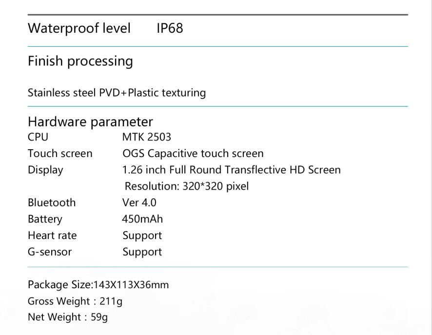 On-time Delivery: If you do not receive your purchase within 60 days, you can ask for a full refund before order completion (when you click "Confirm Order Received" or exceed confirmation timeframe).Cool Gift FS08 Smartwatch MTK2503 GPS IP68 Resistant Bluetooth 4.0 Heart Rate Multi-mode Sports Monitoring