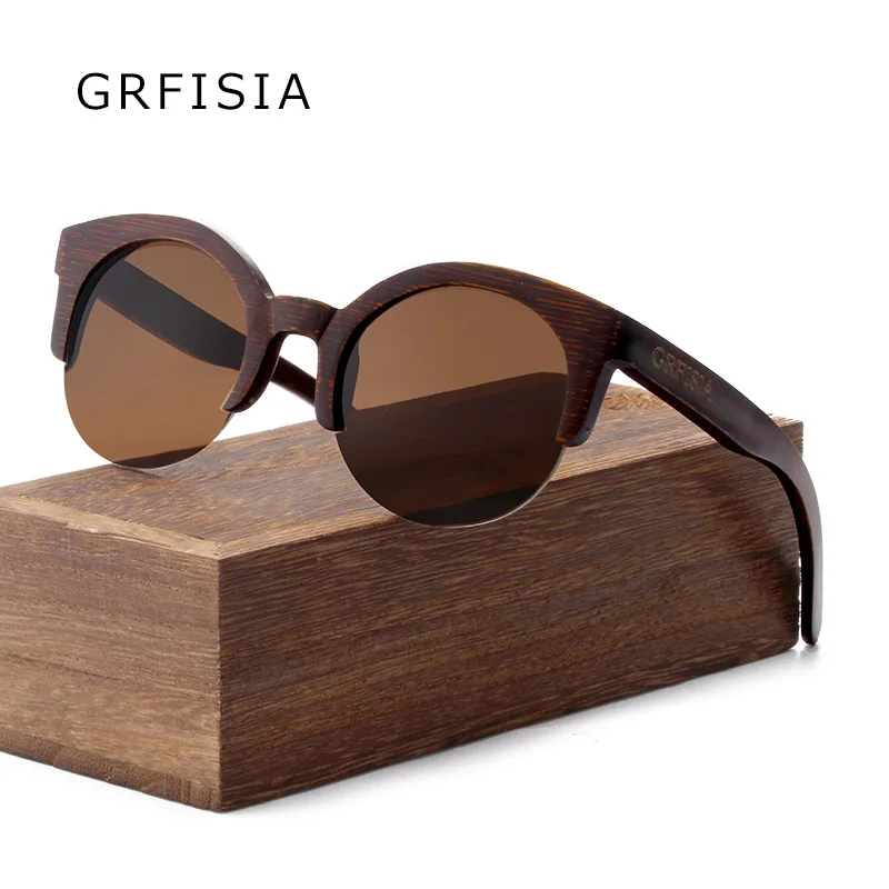 Fantastic New GRFISIA Semi-Rimless Bamboo Round Women New fashion Sunglasses Men Brands Designer HD Handmade UV400 sunglasses G013 fashion sale Rating: 4.3 out of 5