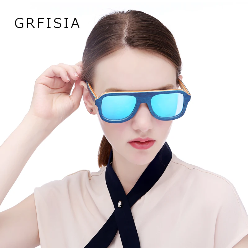 Fast Limited GRFISIA Women Wood Sunglasses Brand Designer Classic Square Polarized Sun Glasses Women Men Hand Made Shades Package Box G011 fashion sale Rating: 4.3 out of 5