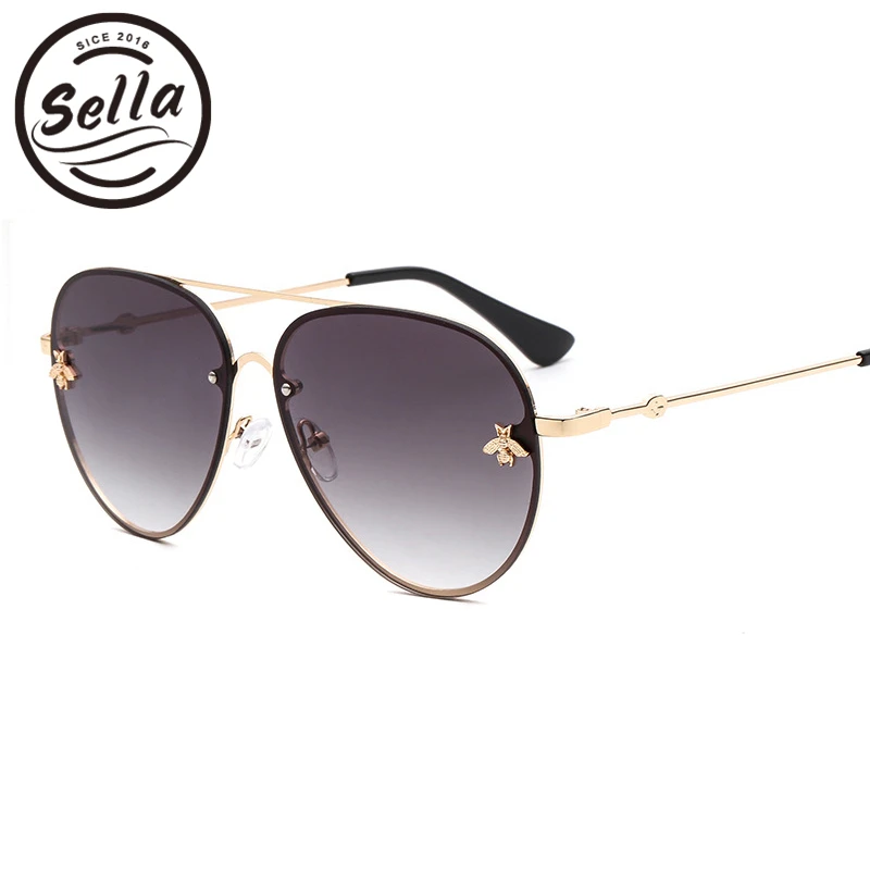 Super New Sella New Arrival Retro Fashion Pilot Women Men Gradient Tint Lens Sunglasses Brand Designer Bees Decoration Sun Glasses fashion sale Rating: 4.9 out of 5
