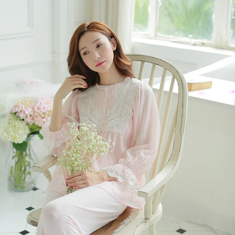Wonderful Offers High Quality Free Shipping 2017 New Autumn Spring Womens Retro Royal Princess Pijamas Pants Set 100% Cotton Sleepwear Homewear fashion sale Rating: 4.5 out of 5