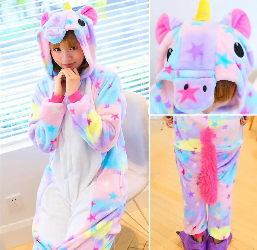 2018 Special 2017Wholesale Rainbow Unicorn Kigurumi Stitch Unisex Flannel Hoodie Pajamas Costume Cosplay Animal Onesies Sleepwear Women Adul fashion sale Rating: 5 out of 5