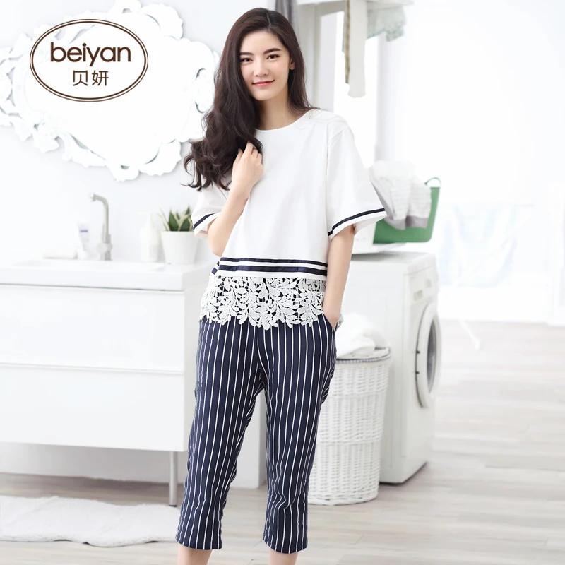Big Clearance Summer Womens Sleepwear Comfortable Cotton Brief Stripe At Home Set Lounge Pajamas fashion sale Rating: 3.8 out of 5