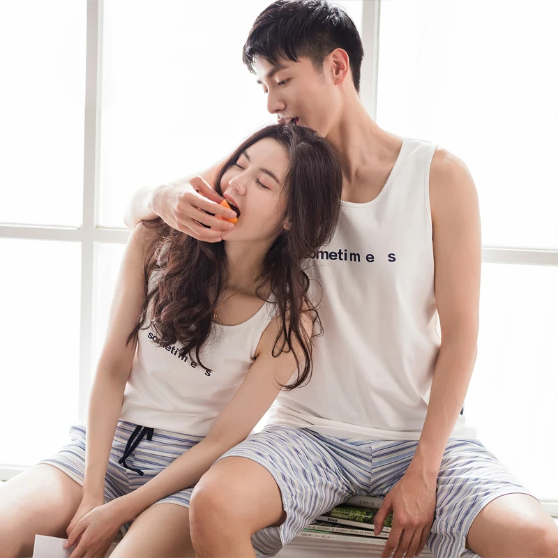 On-time Delivery: If you do not receive your purchase within 60 days, you can ask for a full refund before order completion (when you click "Confirm Order Received" or exceed confirmation timeframe).Hot Promo Summer Lovers Sleepwear Thin Female Male Vest Sleeveless Lounge 100% Cotton Kigurumi Pajamas Set