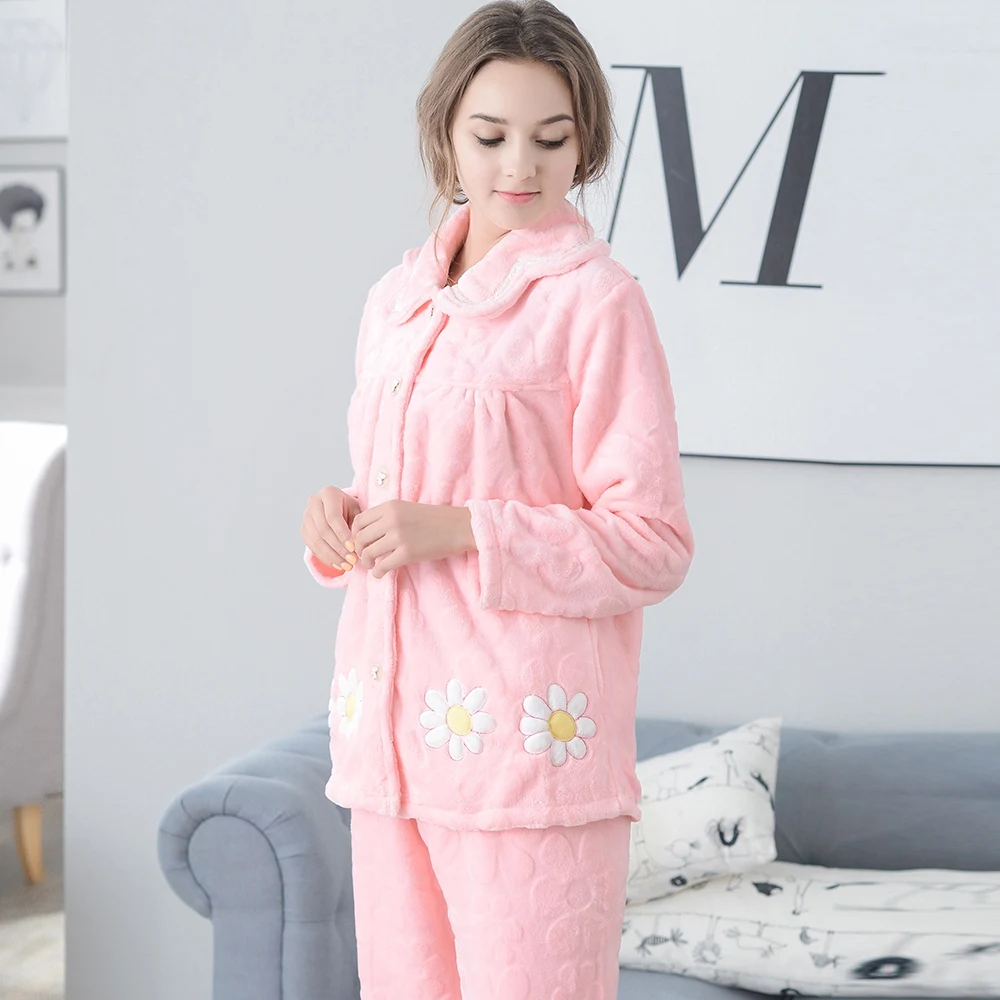 Hurry! Promotion Autumn And Winter Flannel Sleepwear Long-sleeve Cardigan Thick Plus Size Coral Fleece Lounge Female Set fashion sale Rating: 4.6 out of 5