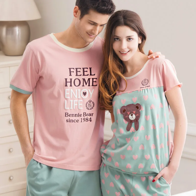 Hurry! Sale 100% Cotton Male Or Female Short-sleeve Lovers Short Lounge set Sleepwear Leisurewear at home service fashion sale Rating: 5 out of 5