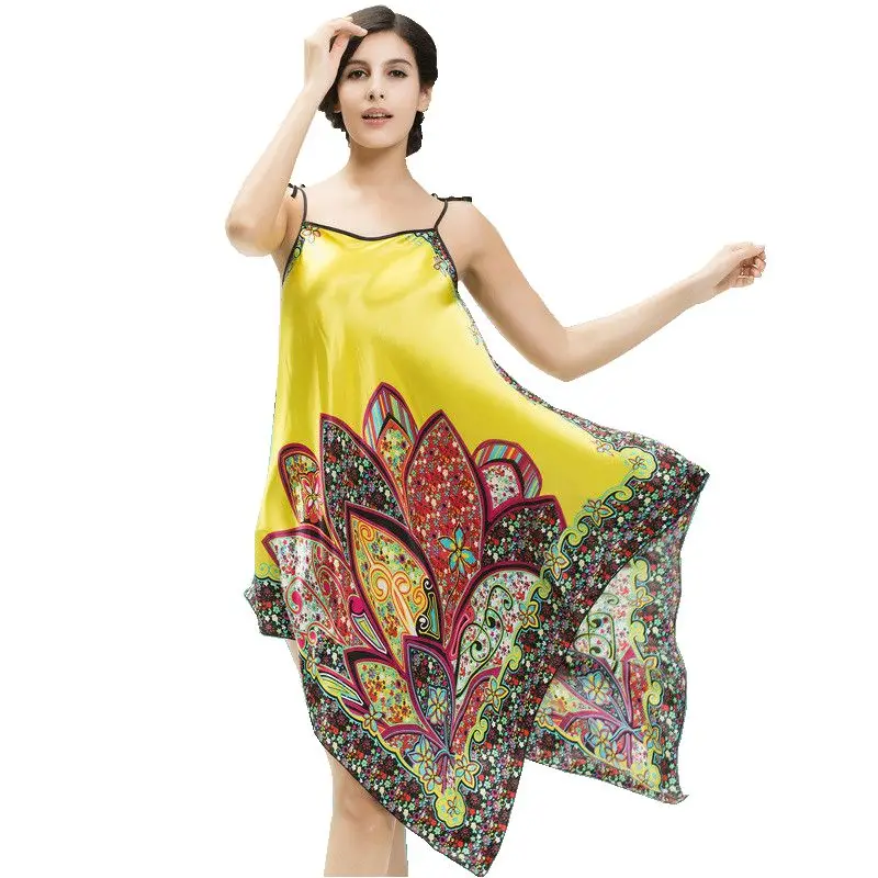 Floral Stylish Summer Women Night Sleepwear Bath Robes Nighty Imitated Silk Lingerie Nightgowns Dress New FT201
