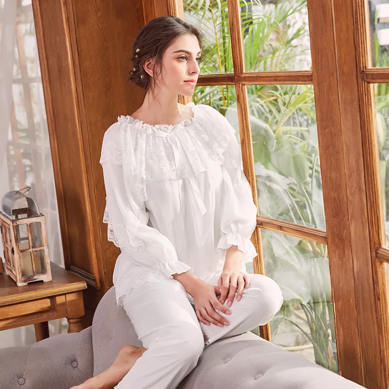 Big Promo Pajama Sets 2018 New Cotton Long Sleeve Sleepwear Sexy Women Character Home Wear Vintage Indoor Clothing Pyjamas For Women fashion sale Rating: 4.7 out of 5
