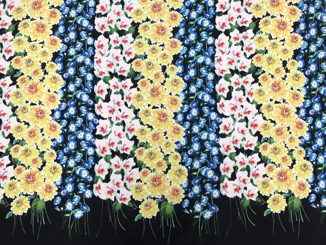 On-time Delivery: If you do not receive your purchase within 60 days, you can ask for a full refund before order completion (when you click "Confirm Order Received" or exceed confirmation timeframe).Big Sale 100X145cm Fashion Week Runway Yellow Chrysanthemum Flowers Satin Fabric for Woman Summer Shirt Sleepwear Dresses DIY-AF428