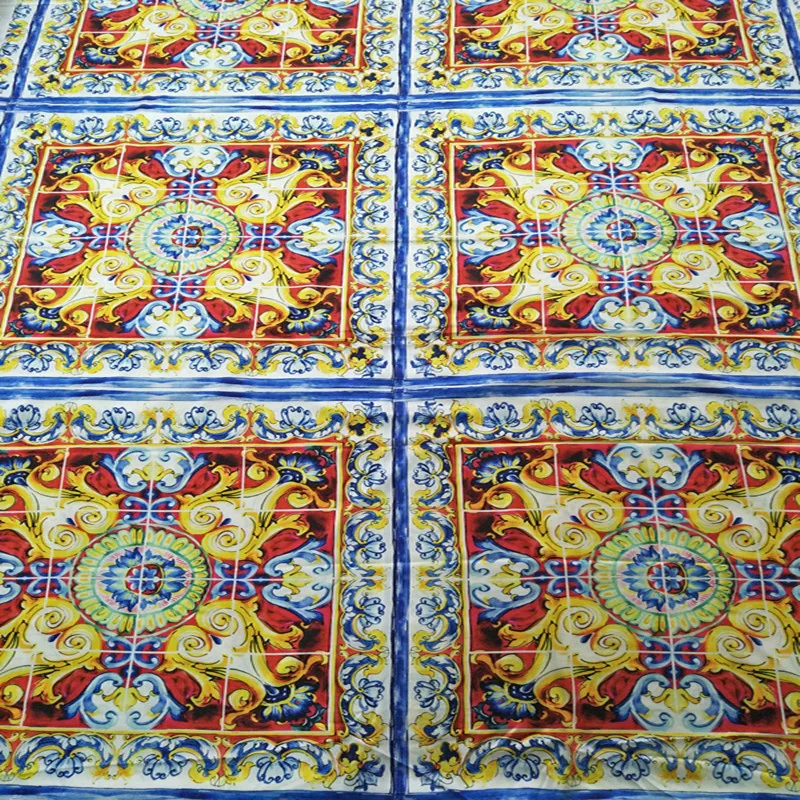 Big Stock Promo 70X145cm Fashion Week Sicilian Majolica Printed The National Wind Satin Fabric for Woman Girl Dresses Sleepwear DIY-AF426 fashion sale Rating: 2.9 out of 5