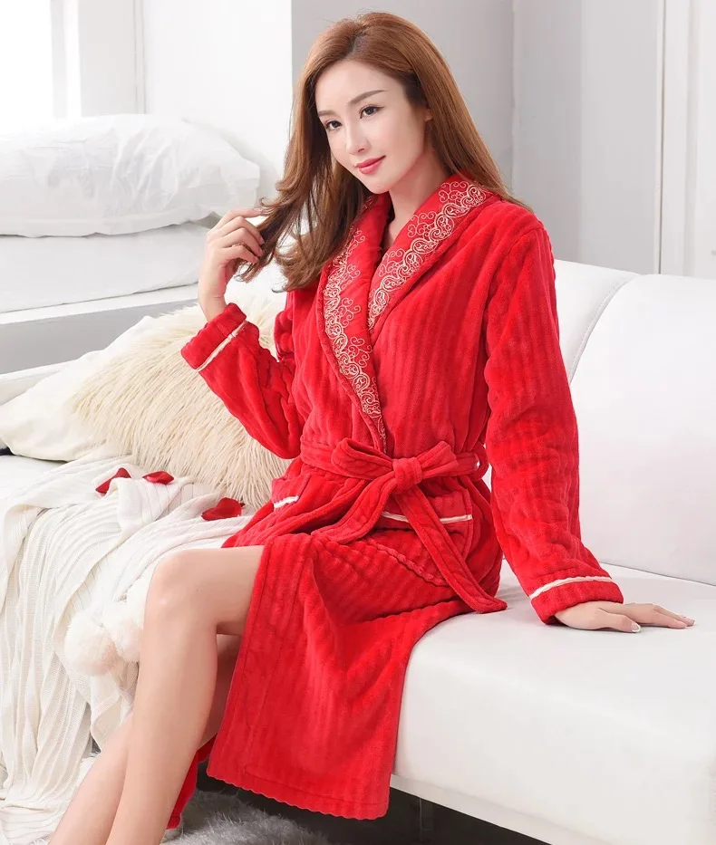Great Deals Womens robe autumn and winter thickening coral fleece thermal bathrobe red flannel sexy sleepwear fashion sale Rating: 5 out of 5