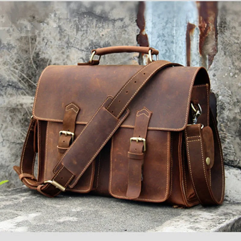 On-time Delivery: If you do not receive your purchase within 60 days, you can ask for a full refund before order completion (when you click "Confirm Order Received" or exceed confirmation timeframe).Excellent Offers Vintage Crazy Horse Leather Pure Handmade Men Handbags Genuine Leather Messenger Bags Fashion men\s leather 14\ laptop bag