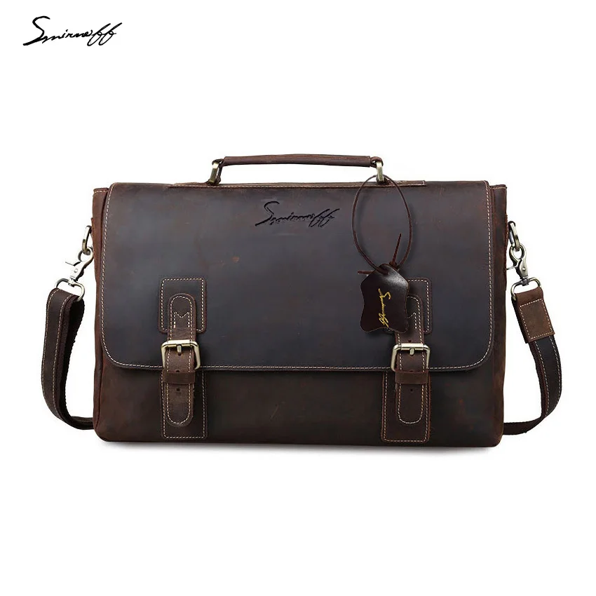 SMIRNOFF Luxury Handbag Vintage Genuine Leather Bag Men Messenger Bag Famous Brand Male Handbag