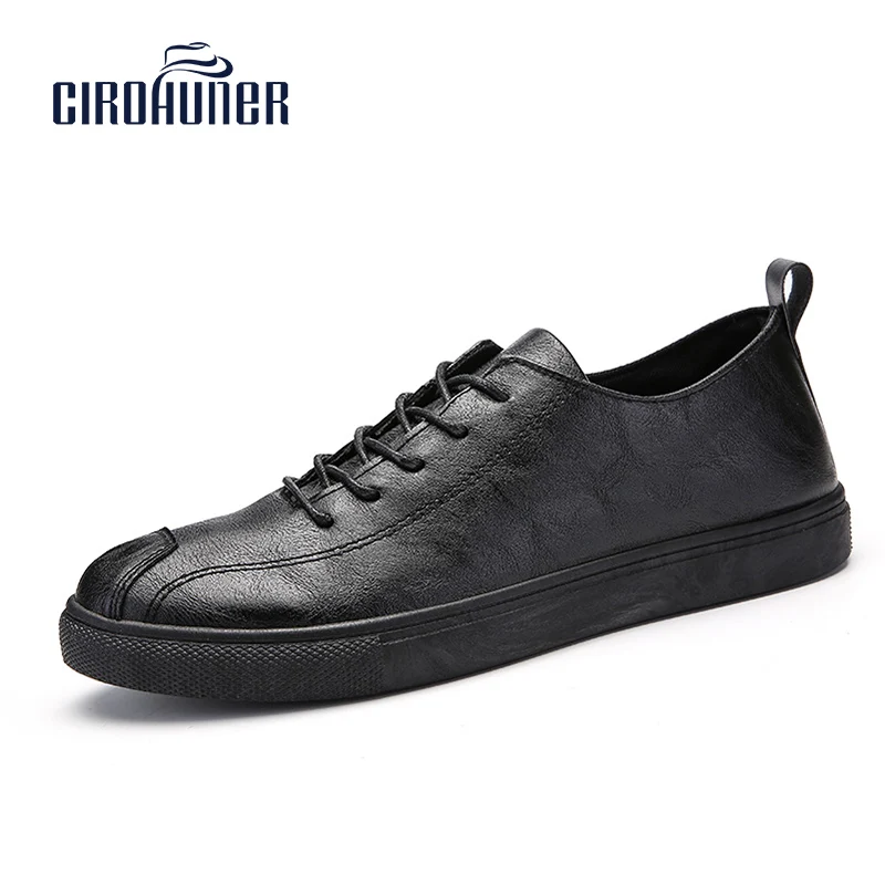 Super Offers CIROHUNER Leather Casual Men Shoes Male Lace up Flats Black Men Krasovki Flat Heel Sneakers tenis masculino Comfortable Shoes fashion sale Rating: 4.7 out of 5